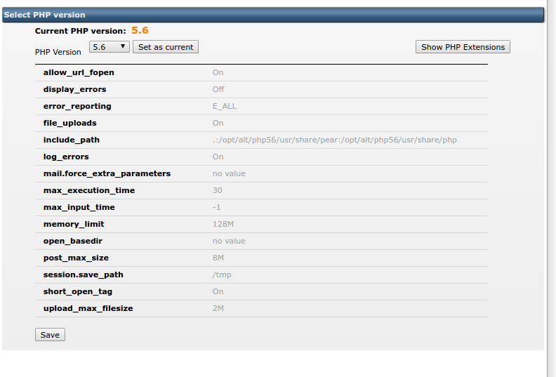 w panelu DirectAdmin po wybraniu naszej domeny a następnie Show PHP Settings