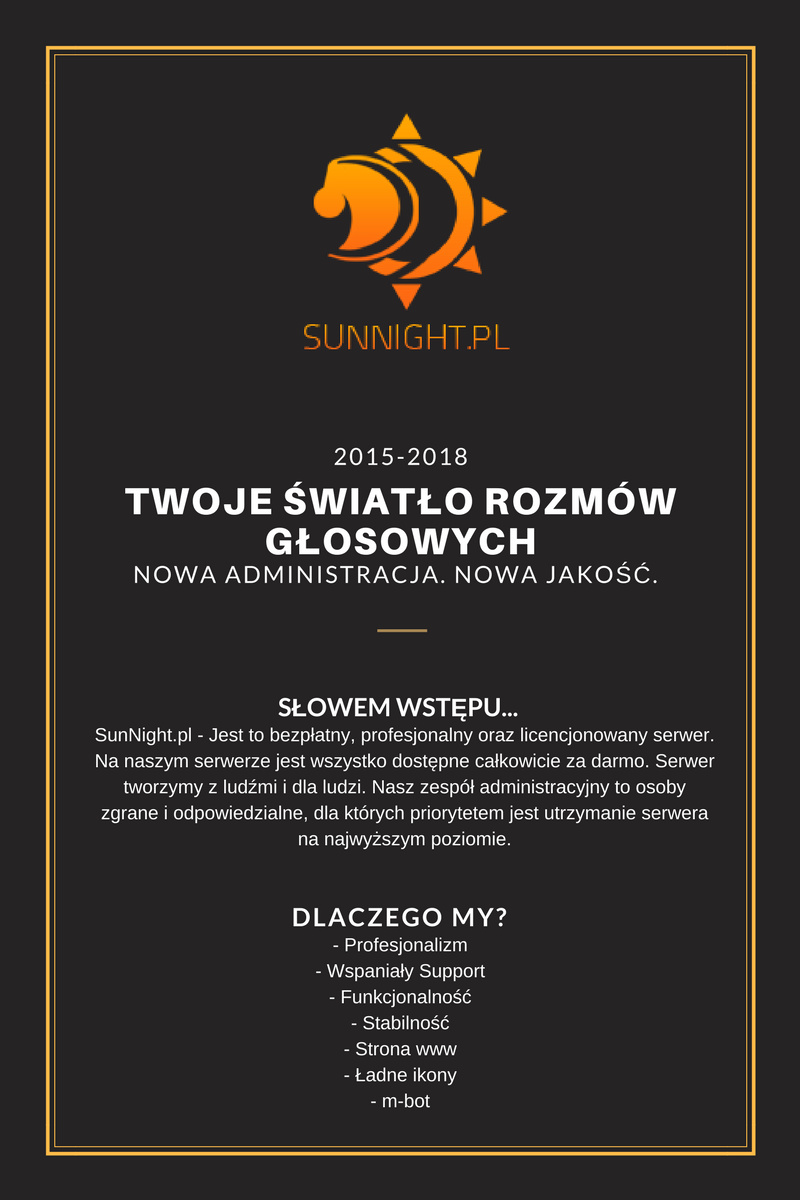 Wkrótce na SunNight pojawią się zmiany - planujemy zmienić banner na lepszy i kupić stronę WWW! Niedługo ma też odbyć się event - będziemy Was informować!