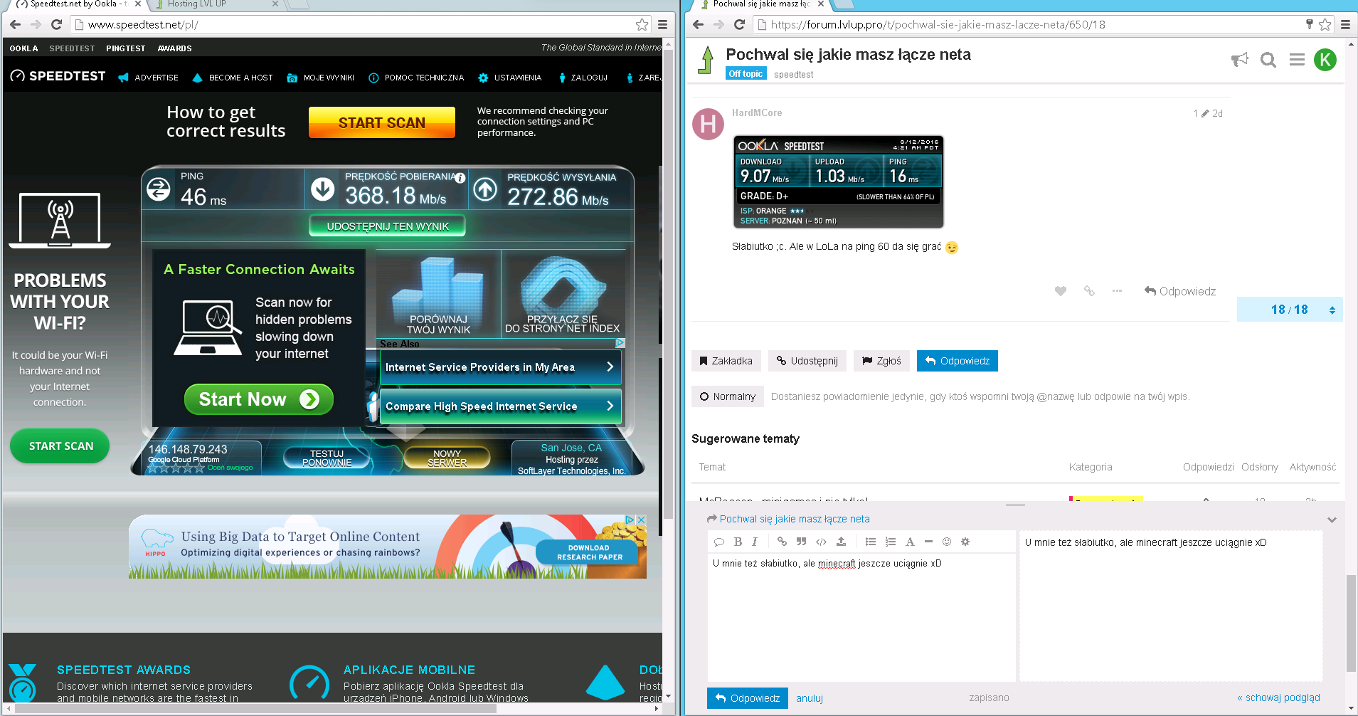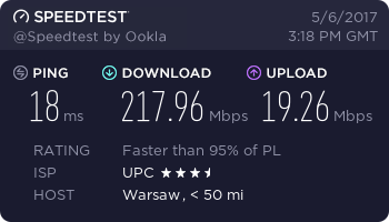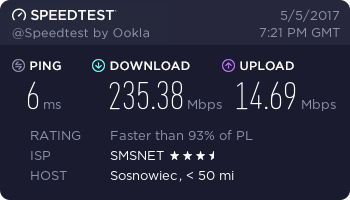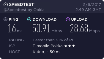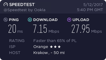Oto wyniki: http://www.speedtest.net/my-result/5452750929
