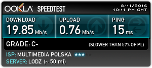 Ale przynajmniej upload mam większy, niż download. Chociaż dzisiaj wyszedł mi wynik wyjątkowo słaby.