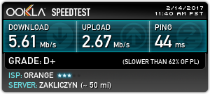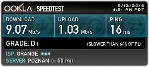 Dość szybki jak na Oranżadę. Do tej pory byłam zadowolona jedynie z UPC (ale tak mega zadowolona) - najlepszy współczynnik ceny do jakości.