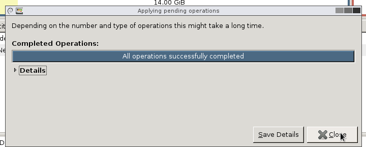 Czekamy kilka sekund i gotowe, nasza partycja jest już większa!