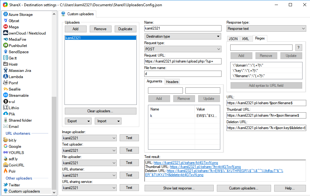 Ok ja się pobawiłem nieco no i prośba, zapodaj mi tutaj konfigurację w ShareX.