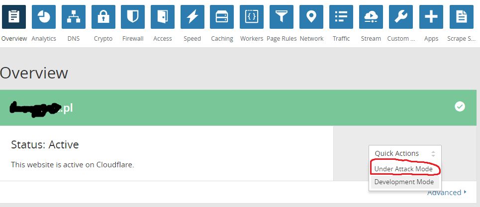 To Checking your browser before accessing mpcforum.pl można włączyć w Dashboardzie. Screen zamieszczam poniżej.