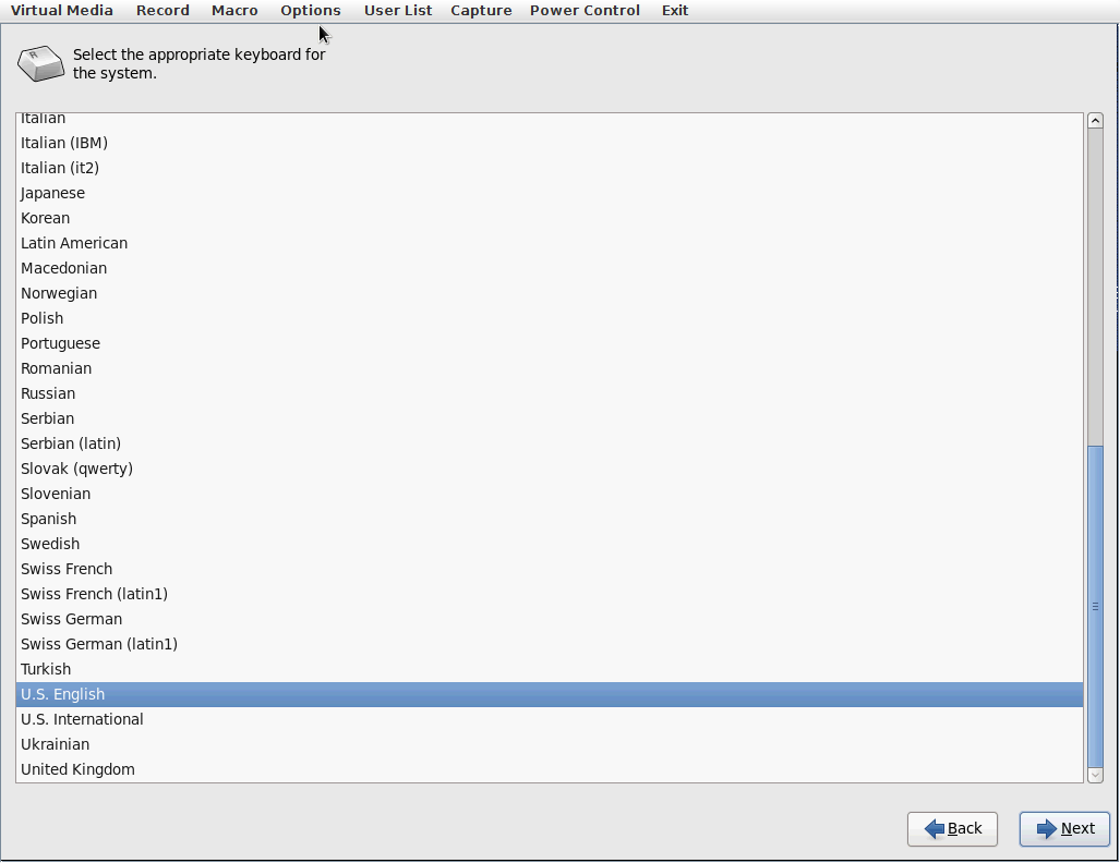 Wybieramy język a następnie układ klawiatury którego będziemy używać w systemie.