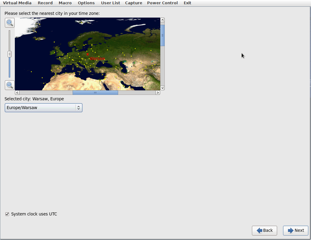 Wybieramy strefę czasową, w moim przypadku jest to Europe/Warsaw