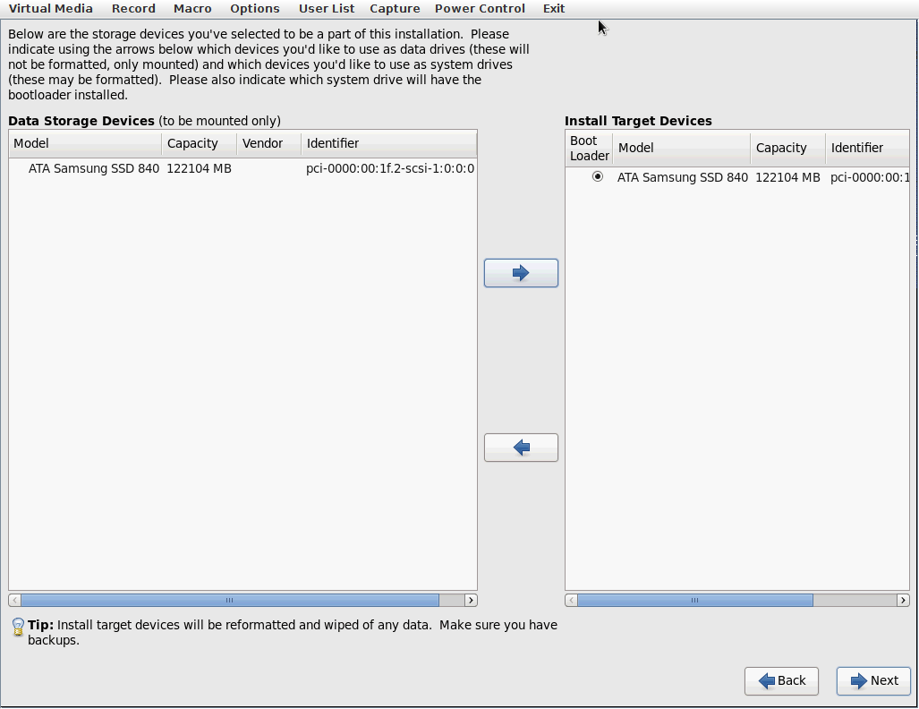 W moim przypadku przesuwam do prawej kolumny tylko pierwszy dysk, drugi chcę mieć wolny.