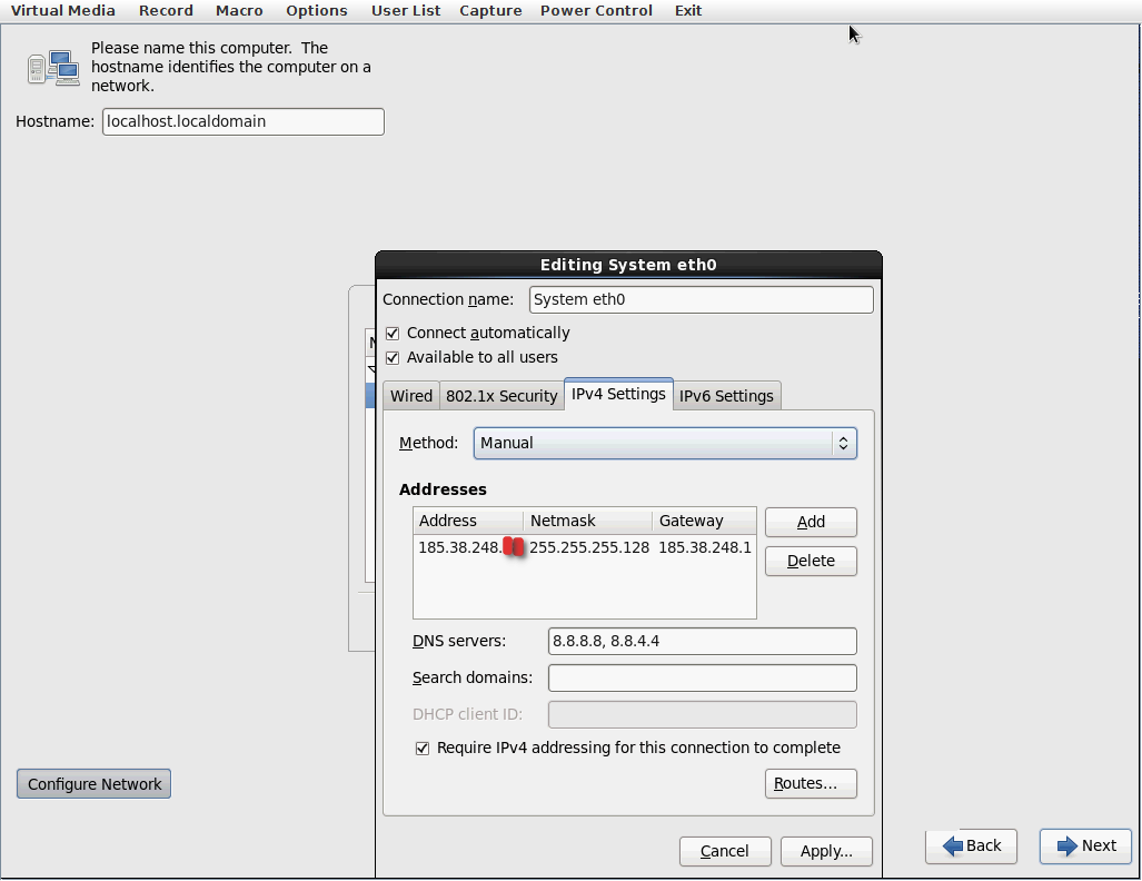 Po kliknięciu na Configure Network
