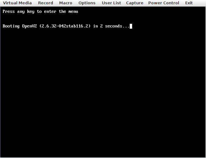 Przy starcie powinniśmy mieć informację że system wystartuje na jądrze OpenVZ
