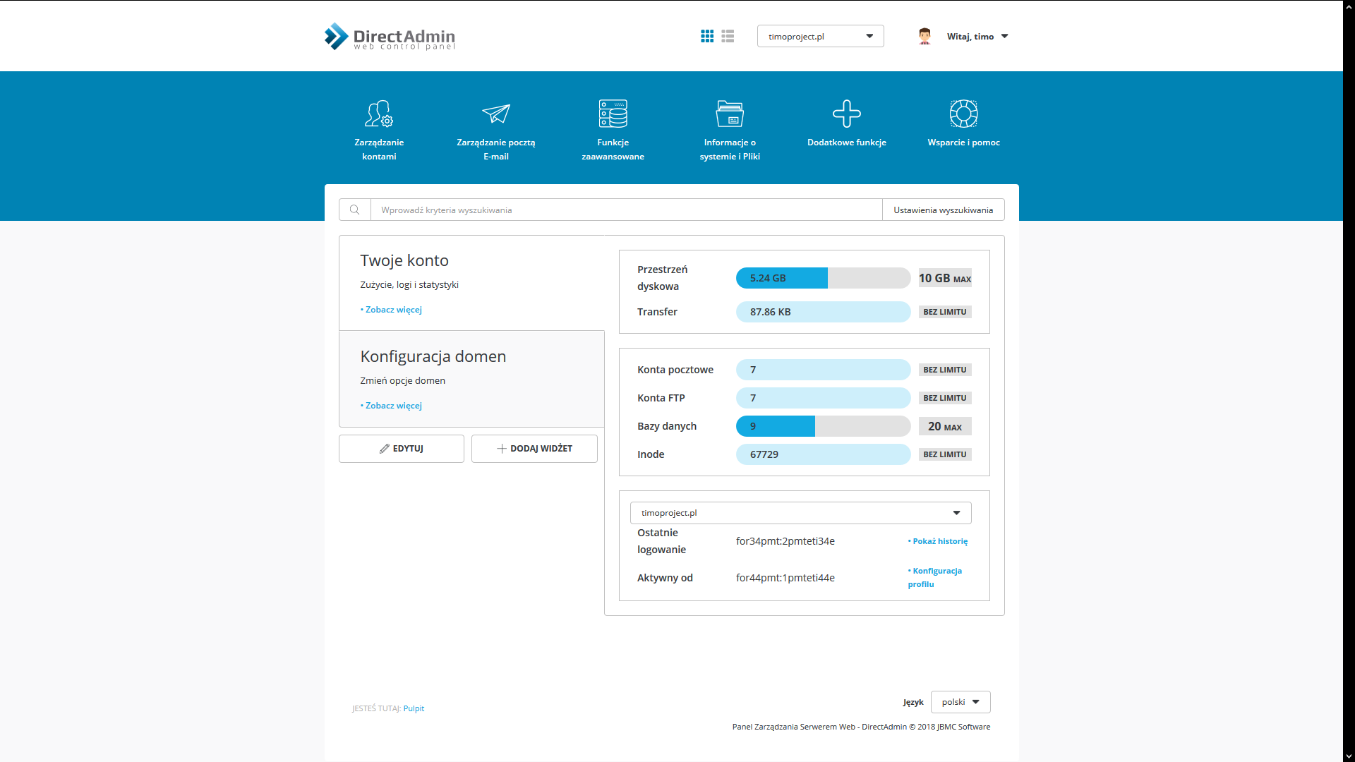 Nie jest to wersja stable (taka jeszcze nie jest dostępna) oraz wszystkie nasze poradniki nadal uwzględniają stary wygląd więc nie mogę przełączyć od razu na ten nowy skin. DirectAdmin nie przewiduje też przełączenia skinu przez samego użytkownika.
