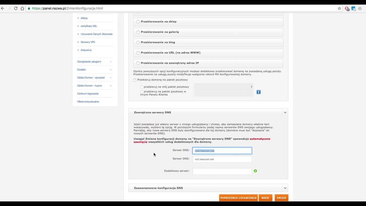 Kiedy zmienisz serwery DNS, twoja domena, a konkretniej jej rekordy, będą obsługiwane przez serwer DNS, który ustawisz.