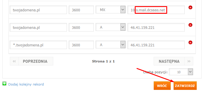 Potem tutaj do zmiany typ A na twoje IP.