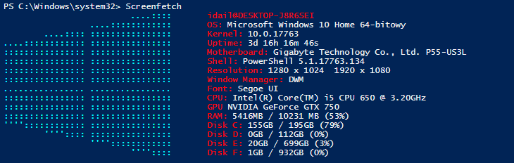 5. Wykonaj polecenie Import-Module windows-screenfetch